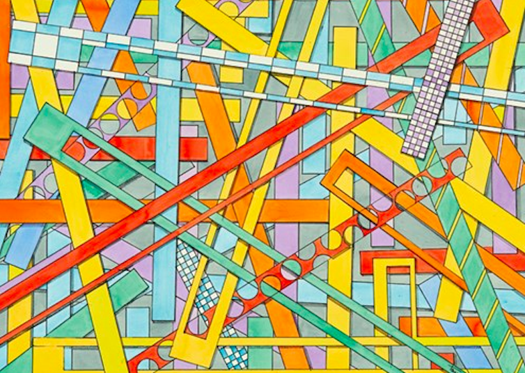 Abstract diagonal lines by Tom Yendell, one of the painters in the study.
