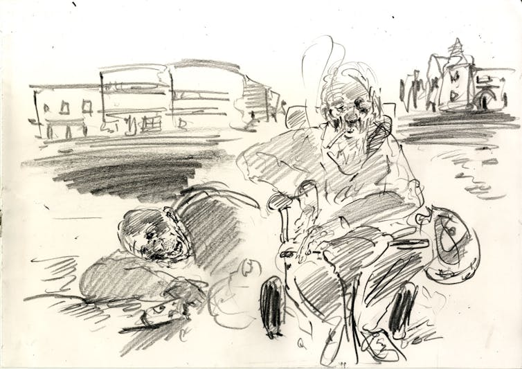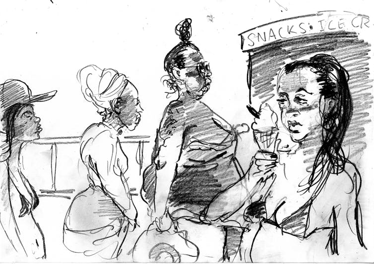 As a travel writer and illustrator, our recent project has involved us documenting and sketching our experiences of visiting seaside towns across England. On our visits, we’ve encountered people living without mains gas or electricity in southern Essex, post-lockdown beach parties turned violent in Bournemouth and COVID-19 conspiracy theories in Torbay and Tynemouth.